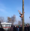 Цитата "Организаторы забавы не искали легких путей для претендентов и предлагали попытать удачи голым, да еще на полностью гладком и отполированном столбе, который иногда даже поливали маслом." Здорово!!! "Великолепное" описание создания дополнительных рисков и кем...? Организаторами?
