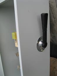 Видимо распредщит расположен в одном помещении со станками. Если так щит должен полностью обесточиваться по окончании работ, на фото не видна конструкция щита, он должен быть защищен от попадания пыли вовнутрь.