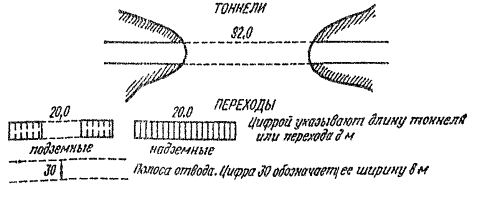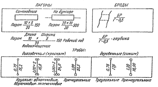 Цифры на условных обозначениях труб указывают отверстия (1,00) в м и полную длину (23,5) в м