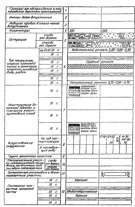 На грунтовых дорогах местного значения заполняют только: карточки на мосты, путепроводы (приложение 2), пикетажную книжку, угломерный и нивелировочный журналы, линейный график.