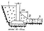 6. Утепление подошвы фундаментных блоков слоем котельного шлака толщиной 10 см, укладываемого вместо песчаной подготовки, а внутренней поверхности фундаментов - шлаком или золой ТЭЦ (применяется аналогично п. 5) |