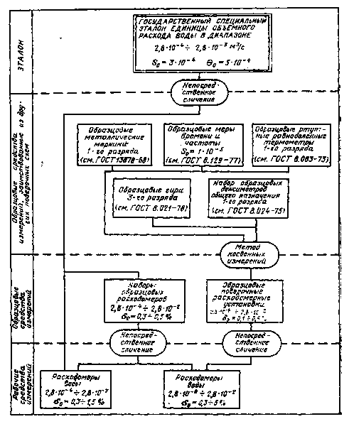 | Государственная система обеспечения ГОСУДАРСТВЕННЫЙ СПЕЦИАЛЬНЫЙ ЭТАЛОН И ОБЩЕСОЮЗНАЯ ПОВЕРОЧНАЯ СХЕМА ДЛЯ СРЕДСТВ ИЗМЕРЕНИЙ ОБЪЕМНОГО РАСХОДА ВОДЫ В ДИАПАЗОНЕ 2,8·10-8÷2,8·10-2м3/с State system for ensuring the uniformity of measurements. State special standard and all-union verification schedule for means measuring volumetric frow of water within the range of 2,8·10-8÷ 2,8·10-2 m3/sec | ГОСТ |