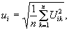 где Uik- значение вибрационного параметра в i-й октавной полосе при k-м измерении.
