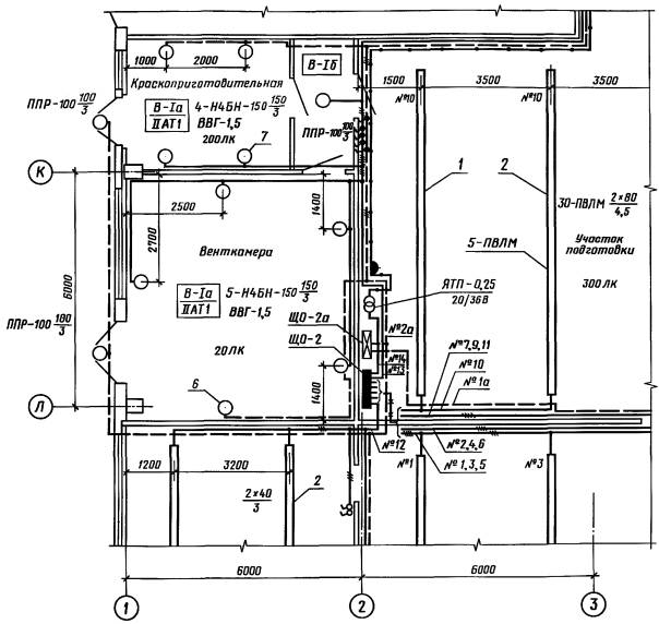 - линии питающей, групповой сети и сети управления освещением (в жилых домах - включая линии для электроплит и других бытовых электроприемников), их обозначения, сечение и, при необходимости, марку и способ прокладки*;