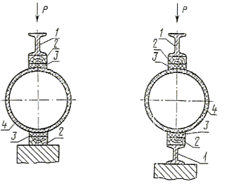 3 - резиновая или войлочная прокладка; 4 - испытуемая труба