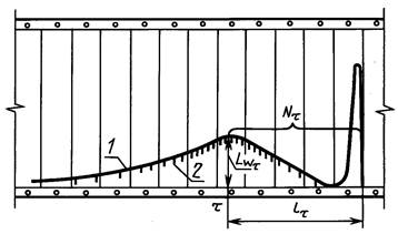 3.3. Значение отклонения пера самописца (Lwt) и число сбросов (Nt) определяют по диаграммной ленте самописца, вид которой приведен на черт. 1.
