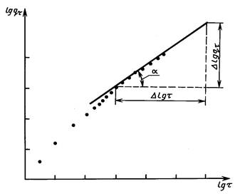 По данным таблицы в масштабе «одна единица третьего знака после запятой значения десятичного логарифма в 1 мм» строят график зависимости lg qt = f(lg t), начиная от времени t = 72 ч в сторону уменьшения, пока график не перестает быть прямой линией (черт. 3).