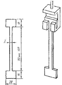 Образцы вформе полосок должны быть шириной 6,0 + 0,4 или 3,0 + 0,2 мм, длиной не менее 50мм при длине рабочего участка (25,0 + 0,5) мм, с расширенными концами длязакрепления в зажимах.