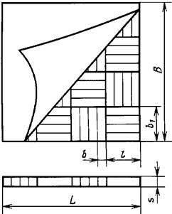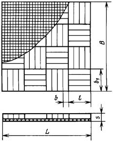 1.4. Паркетный ковер собирают из элементарных квадратов, укладываемых в шахматном порядке. По согласованию изготовителя с потребителем допускаются и другие варианты расположения планок.