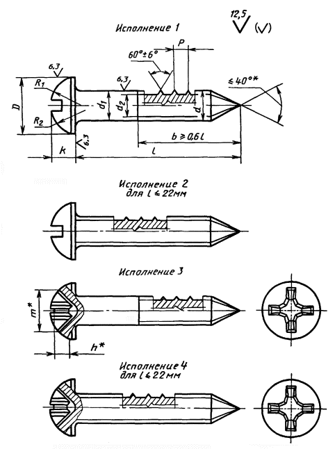 2. Конструкция и размеры шуруповдолжны соответствовать указанным на чертеже и втабл. 1и 2.