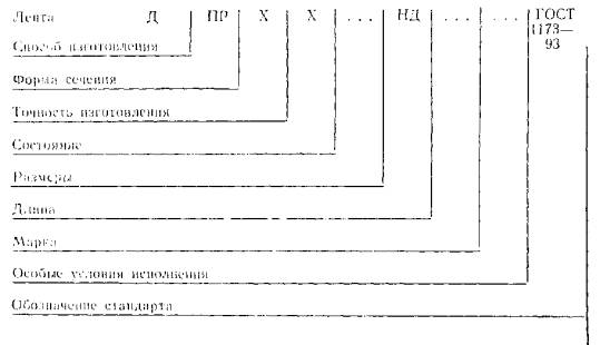 Условныеобозначениялент проставляют по схеме: