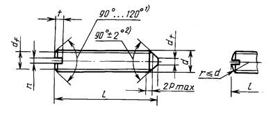 1) Угол 120° обязательно для коротких винтов, длина которых приведена над штриховой ступенчатой линией в таблице 1.