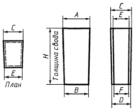 | 3 | 300 | 150 | 65 | Для кладки рядов свода толщиной 300 в сочетании с клиновыми изделиями № 6 и № 8 |