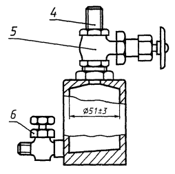 В.5 Прерыватель быстрого действия для подсоединения аппарата для определения давления насыщенных паров к комплекту манометра. Он должен быть такого типа, чтобы в эксплуатации не происходило случайного отказа, т.е. винтовой.