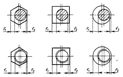 3.8. Отклонение от симметричности L¢s шестигранных и квадратных головок относительно осистержня, отклонение от соосности L¢k круглых головок относительностержня, отклонение от симметричности L¢s шестигранника и квадрата относительно оси отверстияв гайке и отклонение от соосности L¢k наружного цилиндра относительно отверстия в круглойгайке в соответствии с черт. 2 должны определяться по формуле