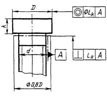 | Lk | Допуск соосности головки относительно стержня в диаметральном выражении | D | 2IT13 | 2IT14 | 2IT15 | ||