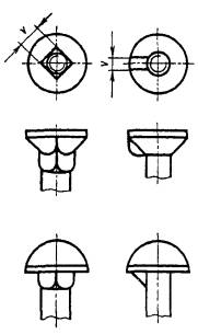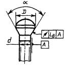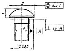 | LR | Допуск перпендикулярности торца головки относительно оси стержня | D | 0,0175 ´ 0,8D (соответствует 1°) | 0,0349 ´ 0,8D (соответствует 2°) | |||