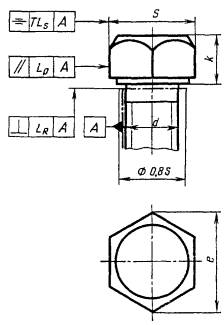 | LS1 | Допуск симметричности шестигранника (размера под ключ) относительно оси отверстия в диаметральном выражении | S | 2IT14 | 2IT15 | |||