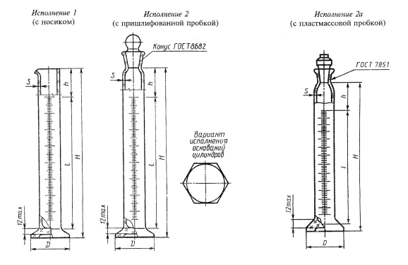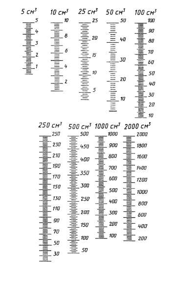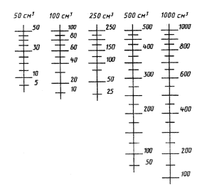Примечание. По требованию заказчикадопускается изготовлять цилиндры вместимостью 10 см3 и 100 см3с градуировкой от нуля.