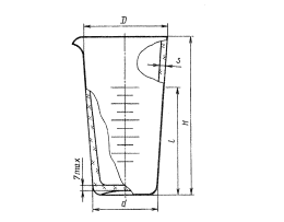 | Вместимость мензурок, см3 | Цена наименьшего деления, см3 | Объем, соответствующий нижней отметке, см3, не более | Н | D | d | l, не менее | S | ||||