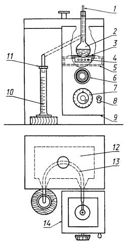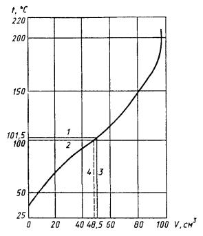 3.5 объем отогнанного продукта: Объем конденсата в кубических сантиметрах в мерном цилиндре, который отмечают одновременно с показанием термометра.