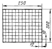 Из рулона бумаги,ламинированной полиэтиленом, вырезают 3 образца размером 200Х250 мм, причембольшая сторона каждого образца должна соответствовать машинному направлениюбумаги. На кальку размером 200Х250 мм наносят сетку со стороной квадратов 10мм. Толщина линий, нанесенных на кальку - не более 0,25 мм (черт. 2).