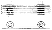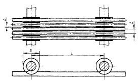 сетка щелевая из колосниковфасонного сечения - собранная изотдельных проволочных колосников фасонного сечения, скрепленных между собойсоединительными шпильками, расположенными на определенном расстоянии друг отдруга (черт. 4);