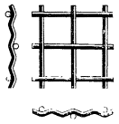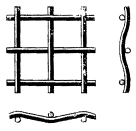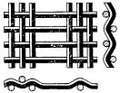 | Проволоки основы (без предварительного рифления) переплетаются с проволоками утка, имеющими изгибы рифления в местах переплетения | Сетка характеризуется размером стороны ячейки в свету и диаметром проволоки. За размер стороны ячейки в свету принимается расстояние между соседними проволоками основы и соседними проволоками утка | Между проволоками основы от 0,7 до 2,5; утка от 2,3 до 50,0 | От 0,5 до 1,8 | Стальная термически необработанная и термически обработанная (черного отжига) низкоуглеродистая и термически обработанная высоколегированная (светлого отжига) проволока | Для фильтрации жидкости |
