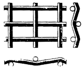 | Каждая проволока из пряди трех рядом расположенных проволок основы переплетается с каждой проволокой утка. Диаметр проволоки утка больше диаметра проволоки пряди основы | Сетка характеризуется размером стороны ячейки в свету и диаметрами проволоки основы и утка. За размер стороны ячейки в свету принимается расстояние между соседними прядями основы и соседними проволоками утка | Между прядями основы от 10,0 до 22,0; между проволоками утка от 1,4 до 5,5 | Диаметр проволоки в пряди основы от 0,4 до 0,8; утка от 0,4 до 2,0 | Стальная термически обработанная низкоуглеродистая (светлого отжига, черного отжига, луженая, оцинкованная) проволока | Для разделения сыпучих тел по крупности и форме зерна |