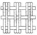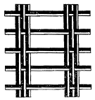 | Проволоки основы, расположенные на определенном расстоянии друг от друга, переплетаются поочередно через две с проволоками утка, расположенными вплотную друг к другу. Ячейки в свету отсутствуют. | Сетка характеризуется числом проволок основы и утка на 1 дм и диаметром проволок основы и утка | Ячейки в свету отсутствуют. Число проволок на 1 дм: основы от 24 до 200; утка от 260 до 1100 | Диаметр проволоки основы от 0,2 до 1,0; утка от 0,14 до 0,6 | Стальная термически обработанная низкоуглеродистая (светлого отжига, черного отжига) и высоколегированная (светлого отжига) проволока. Проволока из меди, латуни, фосфористой бронзы, никеля, монель-металла | Для фильтрации, обезвоживания и сушки |