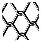| Свивка проволок, перекрещивающихся под углом 120°, с третьей проволокой, образующей большое основание трапеции | Сетка характеризуется размером ячейки в свету и диаметром проволоки. За размер ячейки в свету принимается расстояние между противоположными сторонами шестигранника | 50,0 | 1,6 | Стальная термически обработанная низкоуглеродистая (черного отжига, оцинкованная) проволока. Сетка оцинкованная в полотне | Для ограждения, изготовления клеток в сельском хозяйстве |