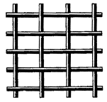 | Переплетение проволок основы и утка через одну проволоку | Сетка характеризуется размером стороны ячейки в свету и диаметром проволоки. За размер стороны ячейки в свету принимается расстояние между соседними проволоками основы или утка | От 0,04 до 20,0 | От 0,03 до 3,0 | Стальная термически обработанная низкоуглеродистая (светлого отжига, черного отжига, оцинкованная, луженая), термически обработанная высоколегированная (травленая, светлого отжига) проволока. Проволока из латуни, фосфористой бронзы, платины, никеля | Для разделения сыпучих тел по крупности и фильтрации |