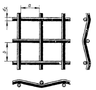 | Проволоки основы (без предварительного рифления) переплетаются с предварительно рифлеными проволоками утка | Сетка характеризуется размером стороны ячейки в свету и диаметром проволоки. За размер стороны ячейки в свету принимается расстояние между соседними проволоками основы или соседними проволоками утка | От 1,6 до 25,0 | От 0,9 до 4,5 | Стальная термически необработанная низкоуглеродистая, термически обработанная углеродистая и высоколегированная (травленая) проволока | Для разделения сыпучих тел по крупности |