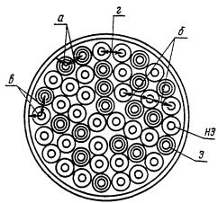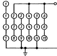 | 1 | 2 и более | Э - экранированная жила; О - общая металлическая оболочка, экран, броня или специальный электрод, соединенные с заземленным источником напряжения; НЭ - неэкранированная жила; 1, 2, 3, 4, 5, 6, 7 - жилы кабельного изделия | а) Все экранированные жилы против всех экранов б) Все неэкранированные жилы всех нечетных повивов против всех неэкранированных жил всех четных повивов, при этом внутренняя жила (или жилы) принимается за первый повив, общая металлическая оболочка, экран, броня или специальный электрод - за последний повив в) Все неэкранированные жилы против всех экранированных, соединенных со всеми экранами г) Все неэкранированные нечетные жилы всех повивов против всех неэкранированных четных жил всех повивов, соединенных с общей металлической оболочкой, экраном, броней или специальным электродом, при этом экранированные жилы в нумерации не участвуют и испытанию по данной схеме не подвергаются. Если в повивах одиночные неэкранированные жилы находятся между двумя экранированными жилами, то такие жилы в нумерации не участвуют и испытанию не подвергаются. д) При нечетном числе нумерованных неэкранированных жил в повиве испытывается дополнительно первая жила против последней в каждом повиве, соединенной с общей металлической оболочкой, экраном, броней или специальным электродом. Это испытание проводится только в случае, если между первой и последней неэкранированными жилами не расположена по крайней мере одна экранированная жила или вместо испытания по подпунктам г, д неэкранированные жилы в повивах могут быть испытаны согласно схеме 7 табл. 1 по группам, содержащим более одной жилы и разделенными между собой отдельно экранированными жилами |
