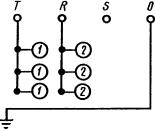 В этом случае испытание поспособу подключения г или по схеме 6(способ подключения б) должно быть проведено раздельно вдва приема: