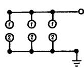 | 6 | Многожильный парной скрутки | Все жилы 1, соединенные вместе, все жилы 2, соединенные вместе присоединены к фазам испытательной установки, а внешний электрод к нулевому зажиму | ||