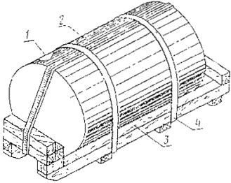 1 - бумага водонепроницаемая; 2 - металлический лист; 3 - деревянный поддон; 4 - металлические ленты.