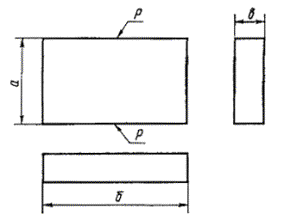 Размерыпрямых изделий (длину, ширину) измеряют по двум параллельным граням -посередине каждой грани. Толщину изделий измеряют по четырем граням. Зарезультат измерений принимают среднее значение результатов всех измерений.Размеры изделий других конфигураций измеряют посередине каждой грани.