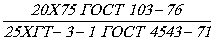 То же полосовой, толщиной 20 мм, шириной 75 мм по ГОСТ 103-76, марки 25ХГТ,группы качества поверхности 3, вариант механических свойств 1, без термическойобработки: