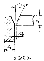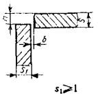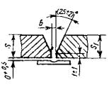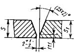 При разности в толщине свариваемыхдеталей свыше значений, указанных в табл. 55, на детали, имеющей большуютолщину s1, должен быть сделан скос содной или двух сторон до толщины тонкой детали s, как указано на черт. 2, 3 и 4. При этом конструктивные элементы подготовленныхкромок и размеры сварного шва следует выбирать по меньшей толщине.
