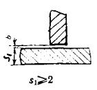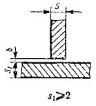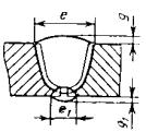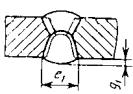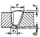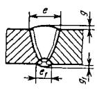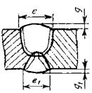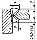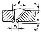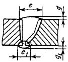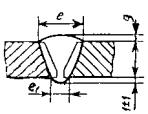 6. В стыковых, тавровых и угловых соединениях толщиной более 16 мм,выполняемых в монтажных условиях, допускается увеличение номинального значения b до 4 мм. При этомсоответственно может быть увеличена ширина шва е, е1.