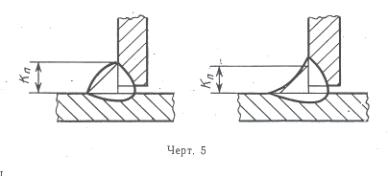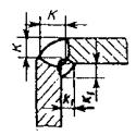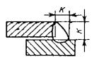 Примечание. Катетом Кп является катет наибольшегопрямоугольного треугольника, вписанного во внешнюю часть углового шва. Присимметричном шве за катет Кппринимается любой из равных катетов, при несимметричном шве - меньший.