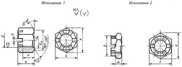 | Название рус.: | Гайки шестигранные прорезные и корончатые класса точности А. Конструкция и размеры |