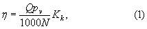 где N - мощность, потребляемая электродвигателем вентилятора, кВт; Kk - коэффициент адиабатного сжатия; L - работа адиабатного расширения 1 м3 сжатого воздуха, Дж/м3; q - расход сжатого воздуха, м3/с |