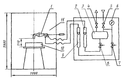 Источниксжатого воздуха с рабочим давлением 3,0 - 4,0·102 кПа.