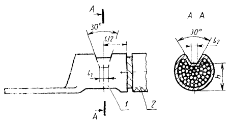 Примечание: l - длина жильной части хвостовиканаконечника указана в таблице стандарта.