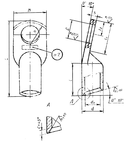 Рекомендуемыеразмеры спрессованных соединений кабельных наконечников приведены на черт. 1 приложения 1 и в таблице.