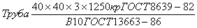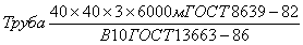 Трубы наружнымразмером 40 мм, толщиной стенки 3 мм, длиной, кратной 1250 мм, из стали марки10, группы В ГОСТ 13663-86: