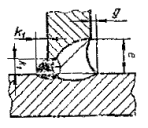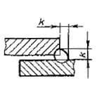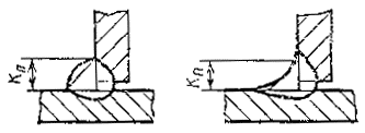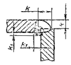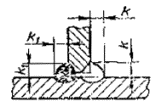 Примечание. Катетом Кпявляется катет наибольшего прямоугольного треугольника, вписанного во внешнюючасть углового шва. При симметричном шве за катет Кппринимается любой из равных катетов, при несимметричном шве - меньший.