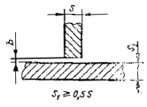 Примечание. Максимальное значениекатетов не должно превышать 1,2 толщины более тонкого элемента.